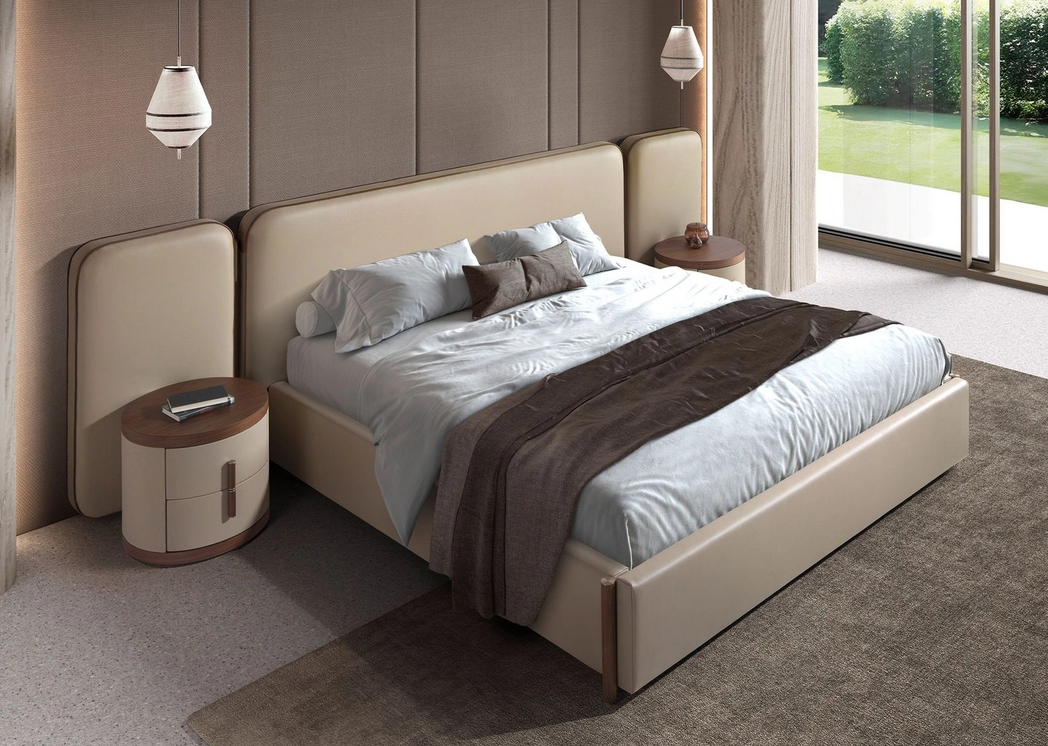 Quarto original com estrutura feita em pele sintético na cor vison.