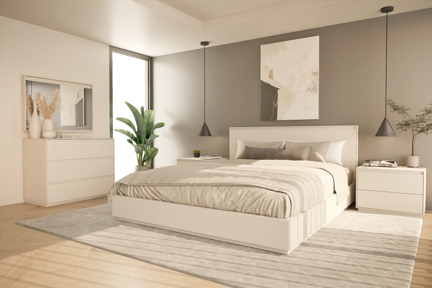 - Combina com mesas de cabeceira e cómoda