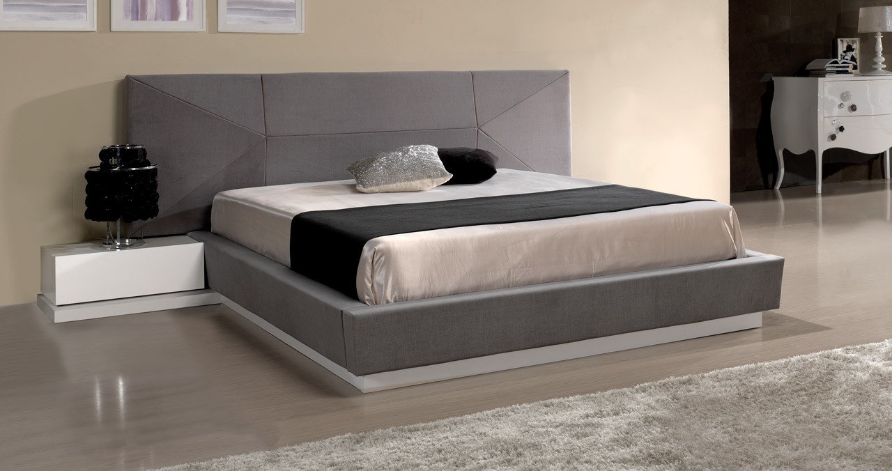 Cama estofada e rodapé lacado a mate.