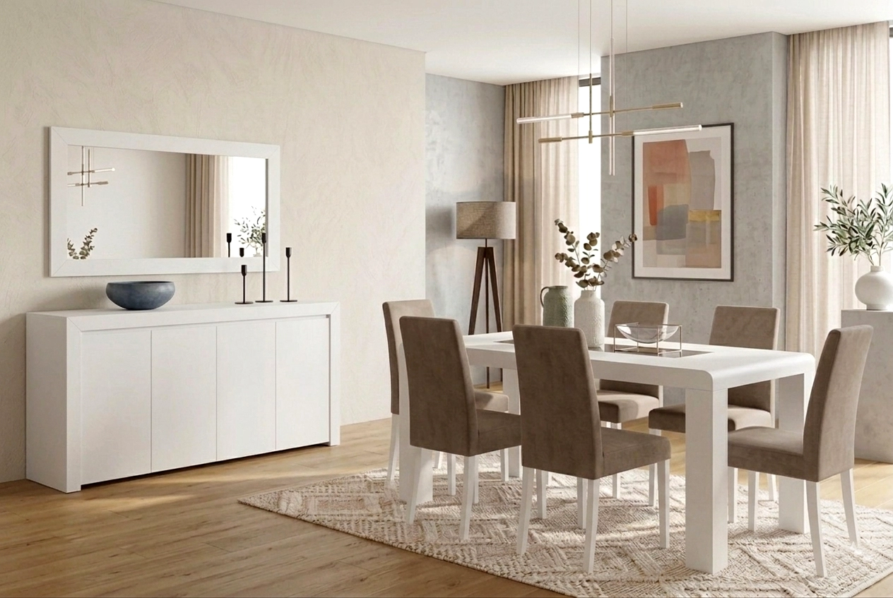 - Aparador integrado oferece espaço de arrumação útil
