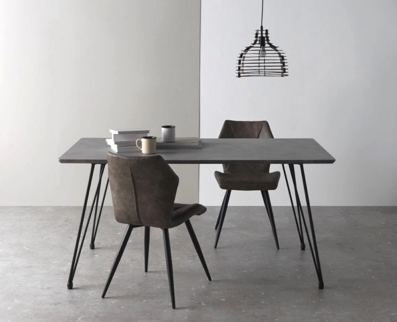 - Pés metálicos finos estilo hairpin
