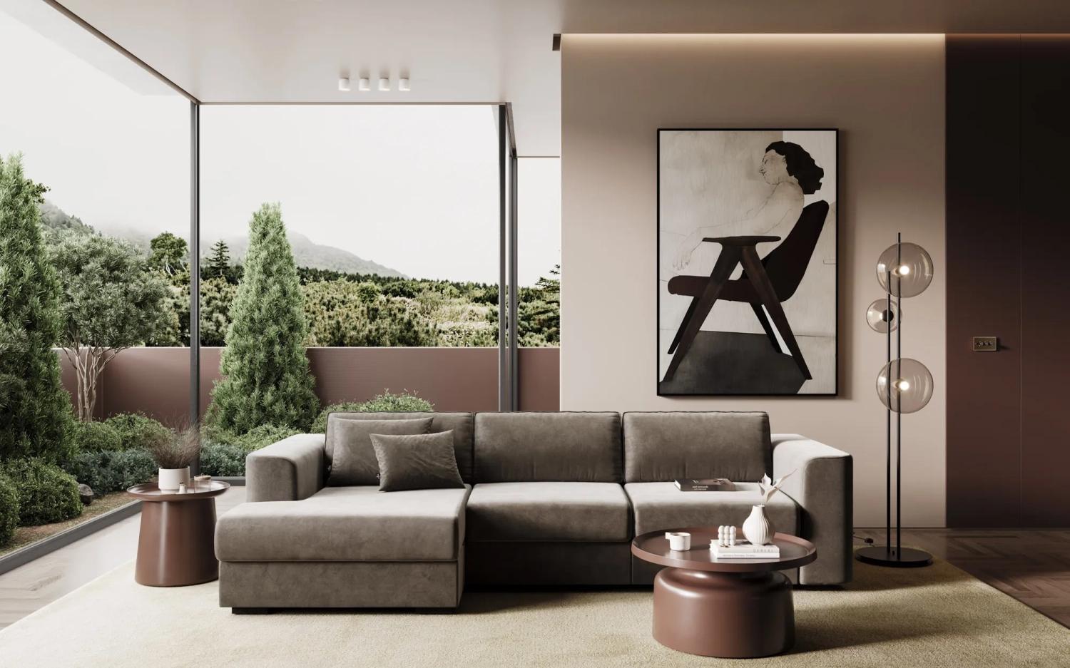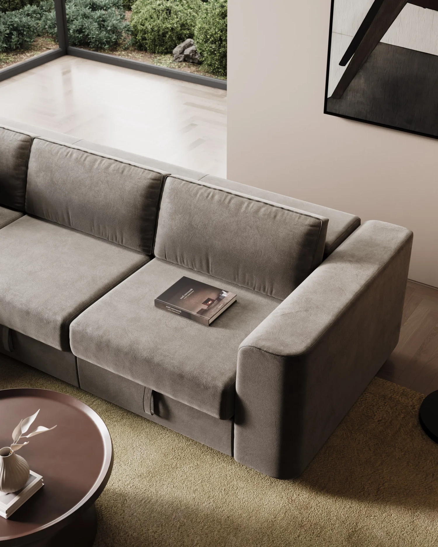 Estrutura em madeira maciça e aglomerado, com assentos em espuma poliuretano de alta resiliência HR3529.
