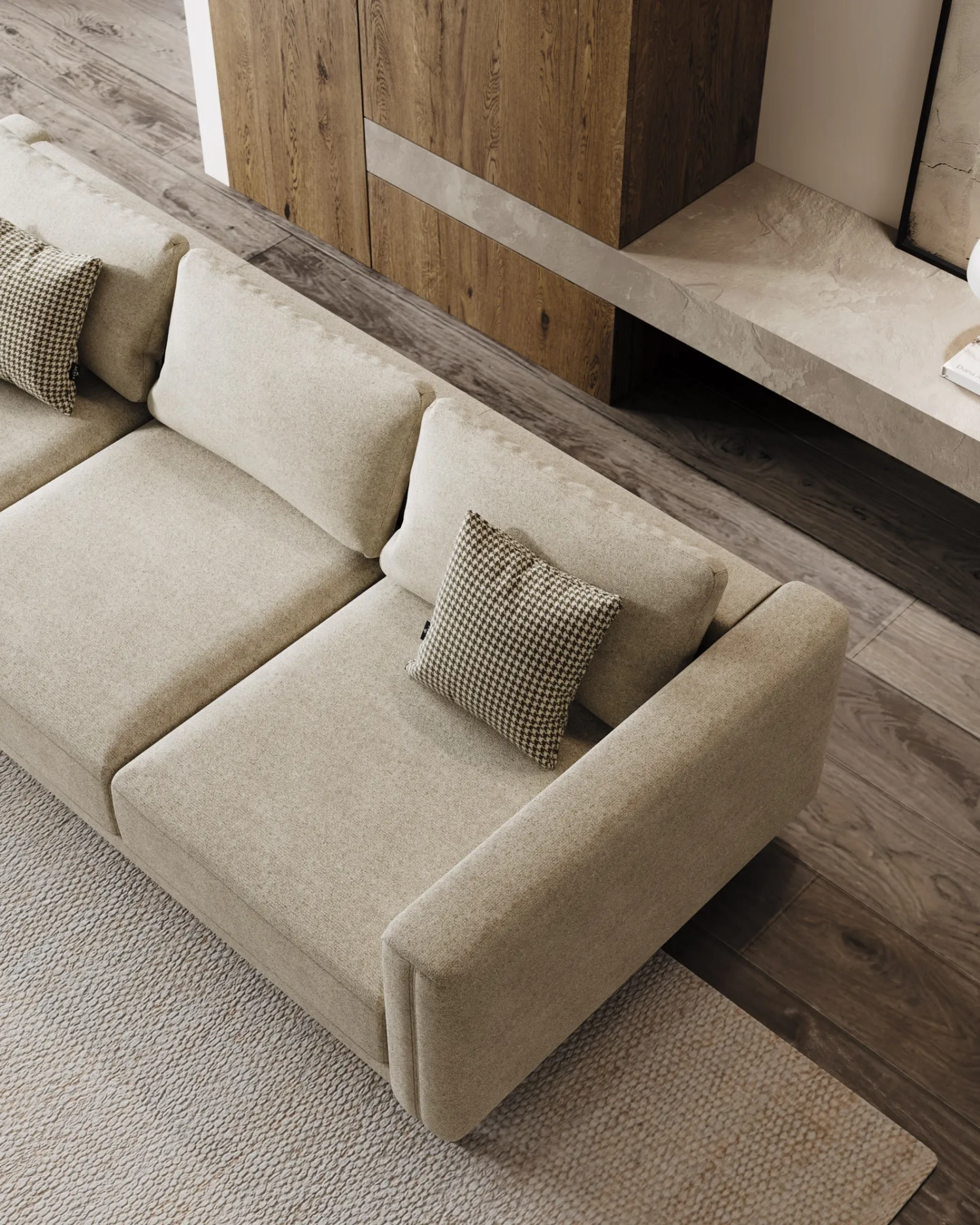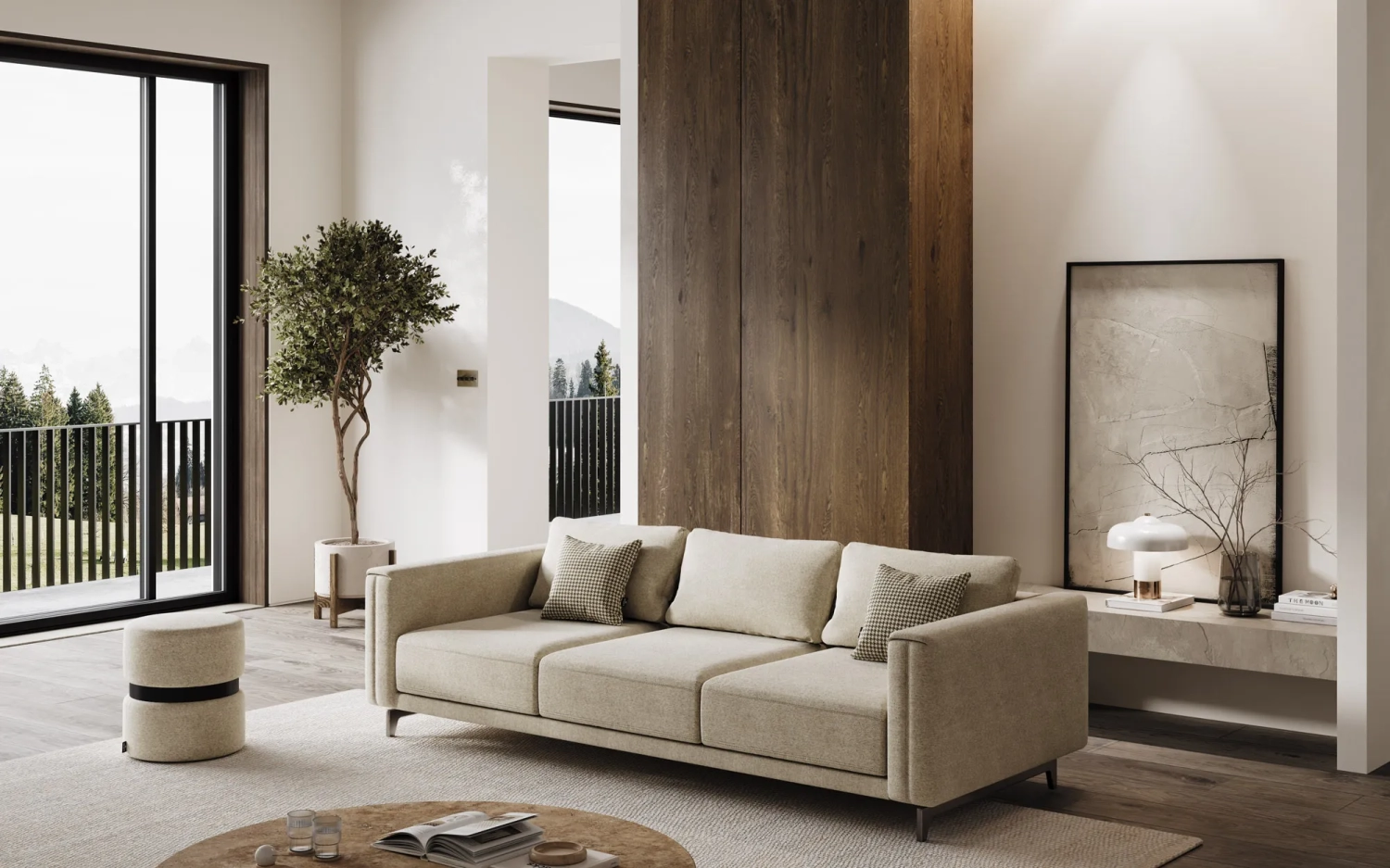 Estrutura em madeira maciça e aglomerado, com assentos em espuma poliuretano de alta resiliência HR3529.