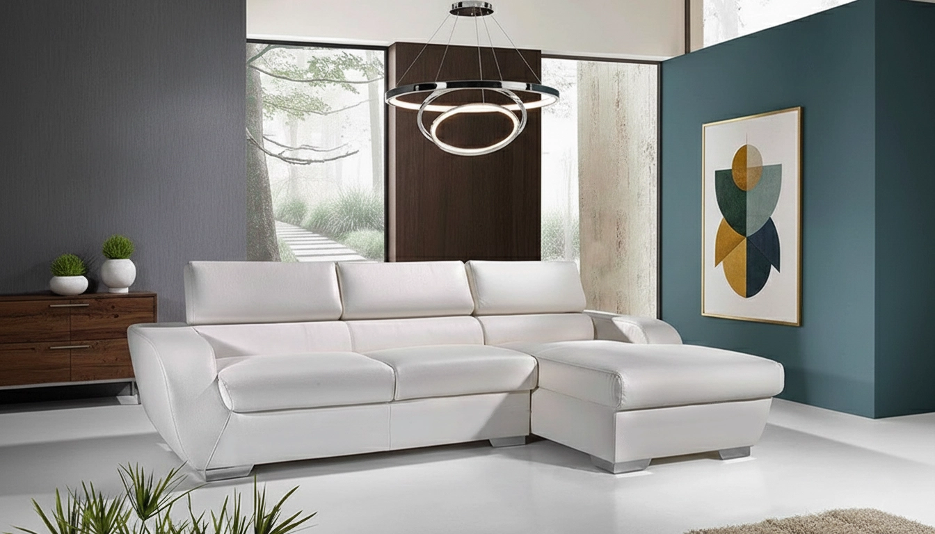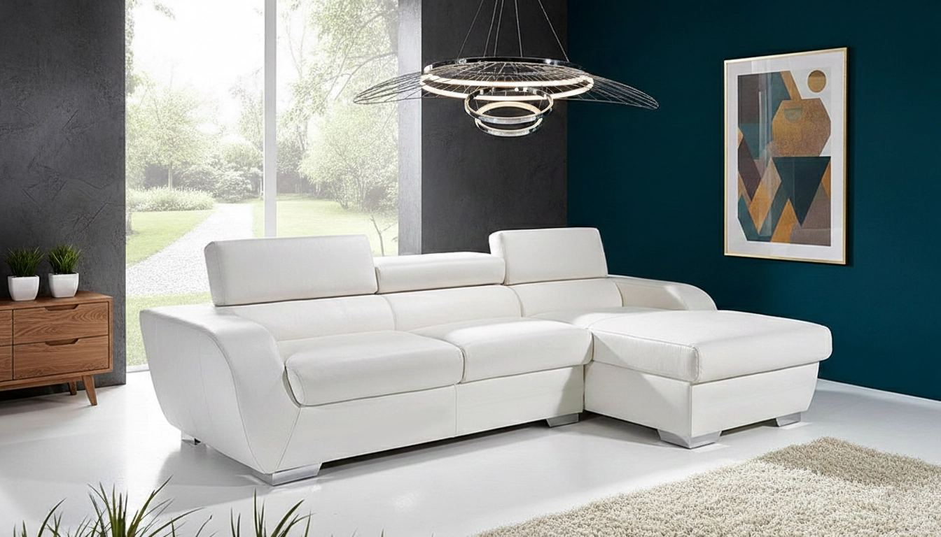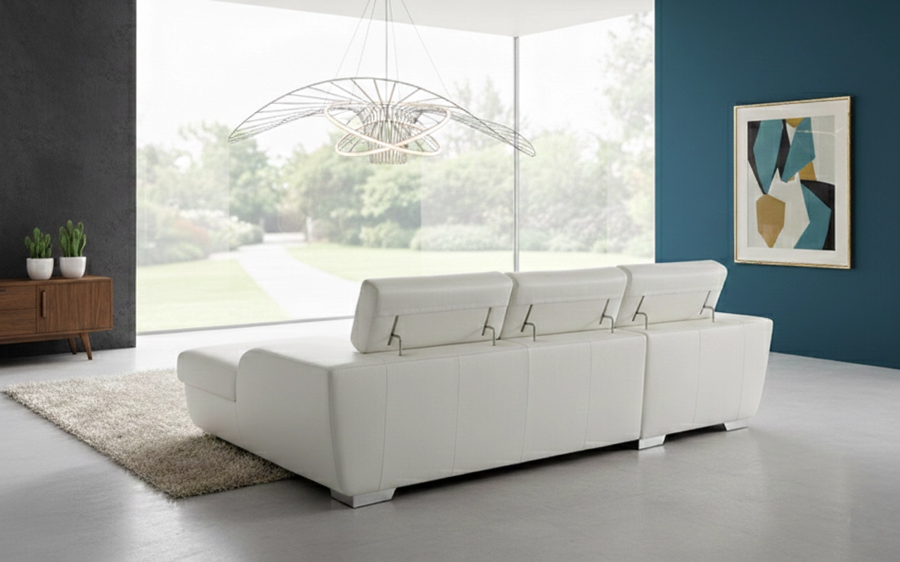 O Sofá Chaise Longue Oslo combina design contemporâneo e conforto para transformar a sua sala. A chaise integrada cria um espaço generoso para relaxar enquanto as linhas clean e o estofado branco iluminam o ambiente. Apoios de cabeça ajustáveis proporcionam suporte personalizável e os pés metálicos discretos garantem estabilidade com um toque moderno. Perfeito para receber amigos ou para momentos de descanso em família, oferece assentos amplos e convidativos que valorizam qualquer decoração. Uma peça funcional e elegante que traz conforto diário e presença sofisticada ao seu espaço.