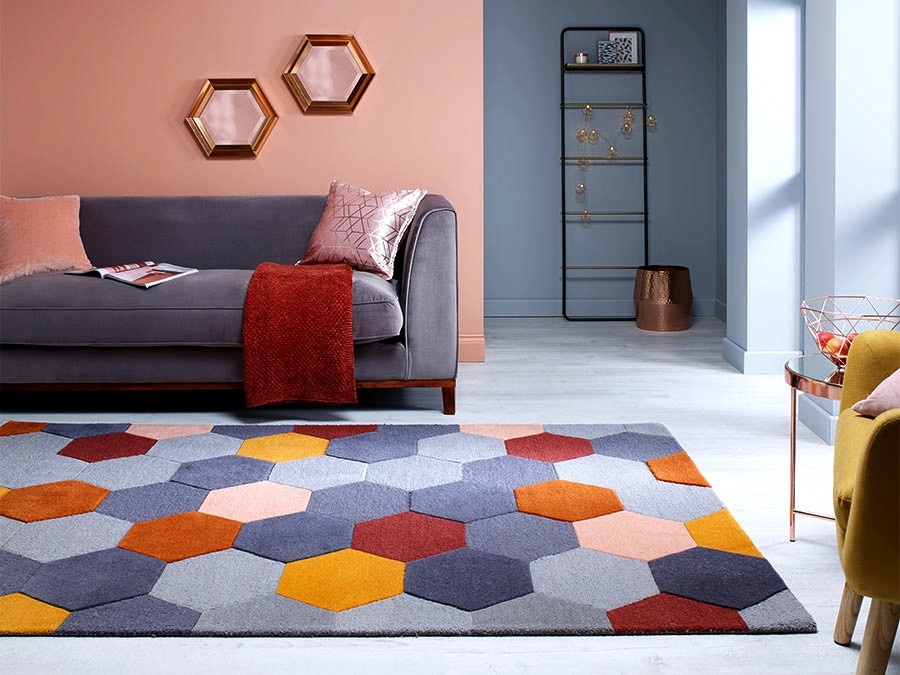 O tapete Munro traz um padrão geométrico de hexágonos que colore a divisão sem perder a sofisticação. A base em tons de cinzento com hexágonos em vermelho, azul, verde e amarelo cria um contraste equilibrado que realça móveis neutros e dá vida a espaços contemporâneos. Ideal para sala de estar, quarto ou escritório, destaca-se como ponto focal que define zonas e aporta uma sensação acolhedora aos ambientes. Entre os tapetes modernos este modelo sobressai pela versatilidade e capacidade de transformar a decoração sem perder elegância.