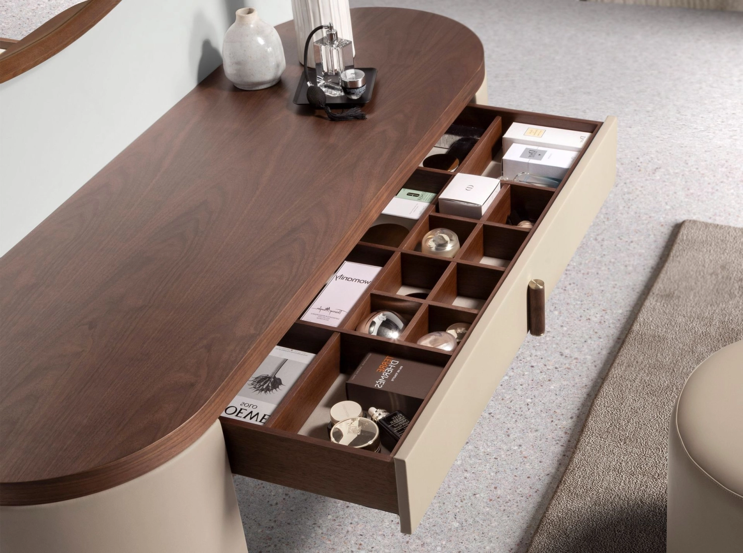 Toucador Feel de design moderno fabricado folha de madeira natural de nogueira.