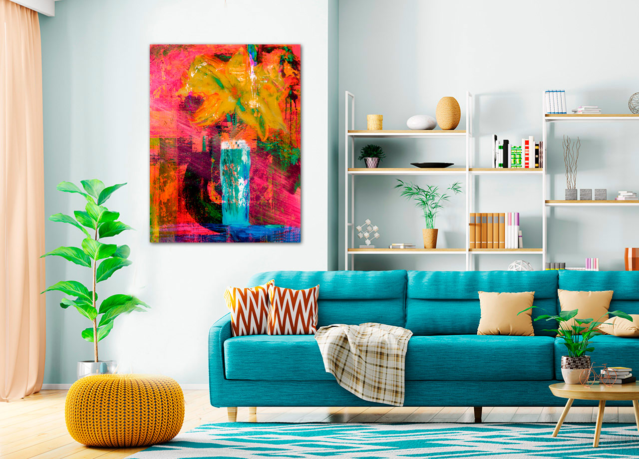 Vaso pintado com flor impressa sobre tela, composição semi abstrata de cores alegres e vitais. Mesa com um motivo muito versátil que permite pendurá-la em qualquer lugar da sua casa ou escritório. We imprimir esta pintura em tela esticou em um quadro de espessura três centímetros, a imagem continua em torno das bordas de modo que você não precisa para enquadrar-lo (Você receberá-lo pronto para pendurar) Nós garantimos a esta pintura permanentemente contra a energia solar desaparecendo dentro de sua casa . Tiendasdecuadros enviará esta pintura em 10 dias úteis.