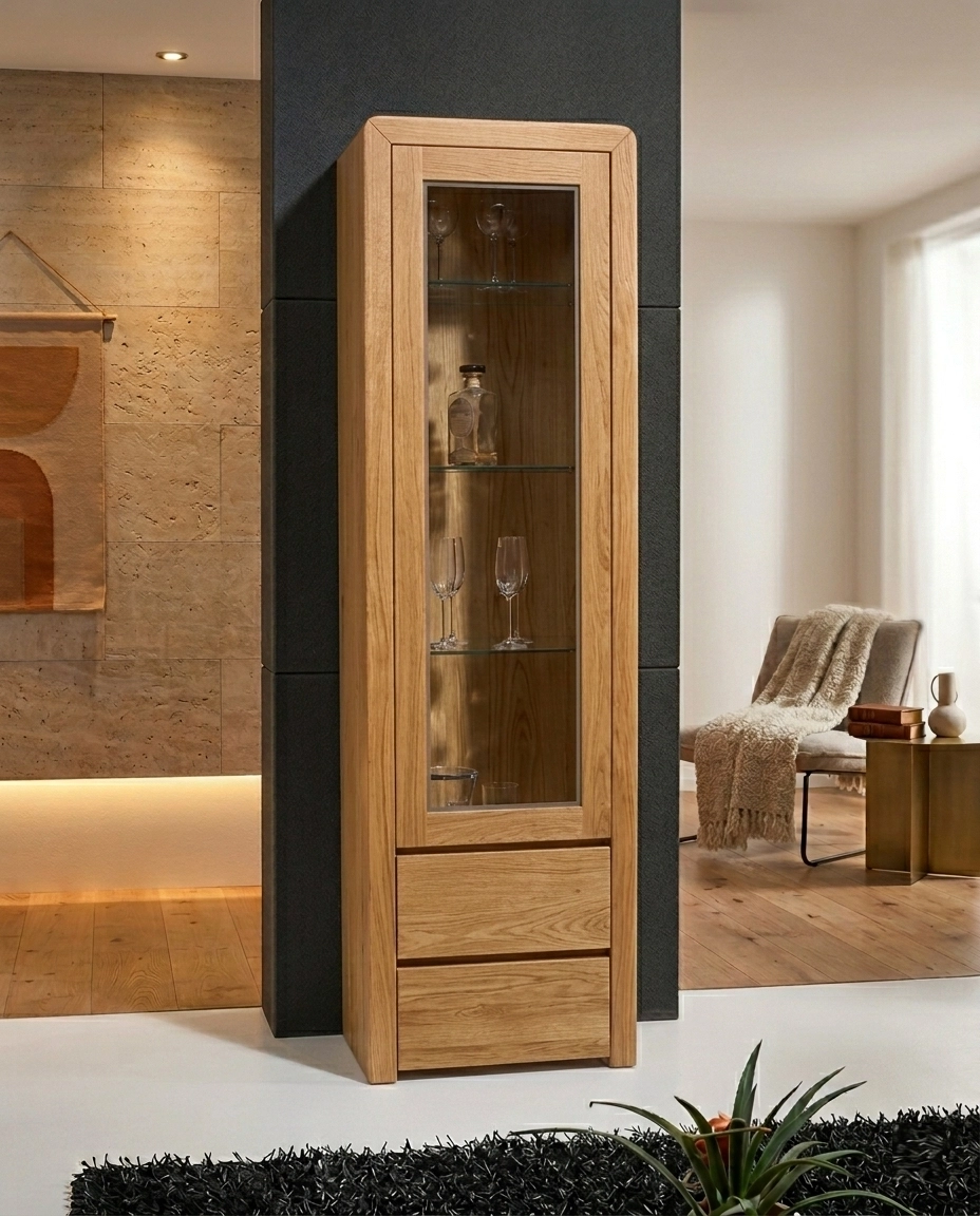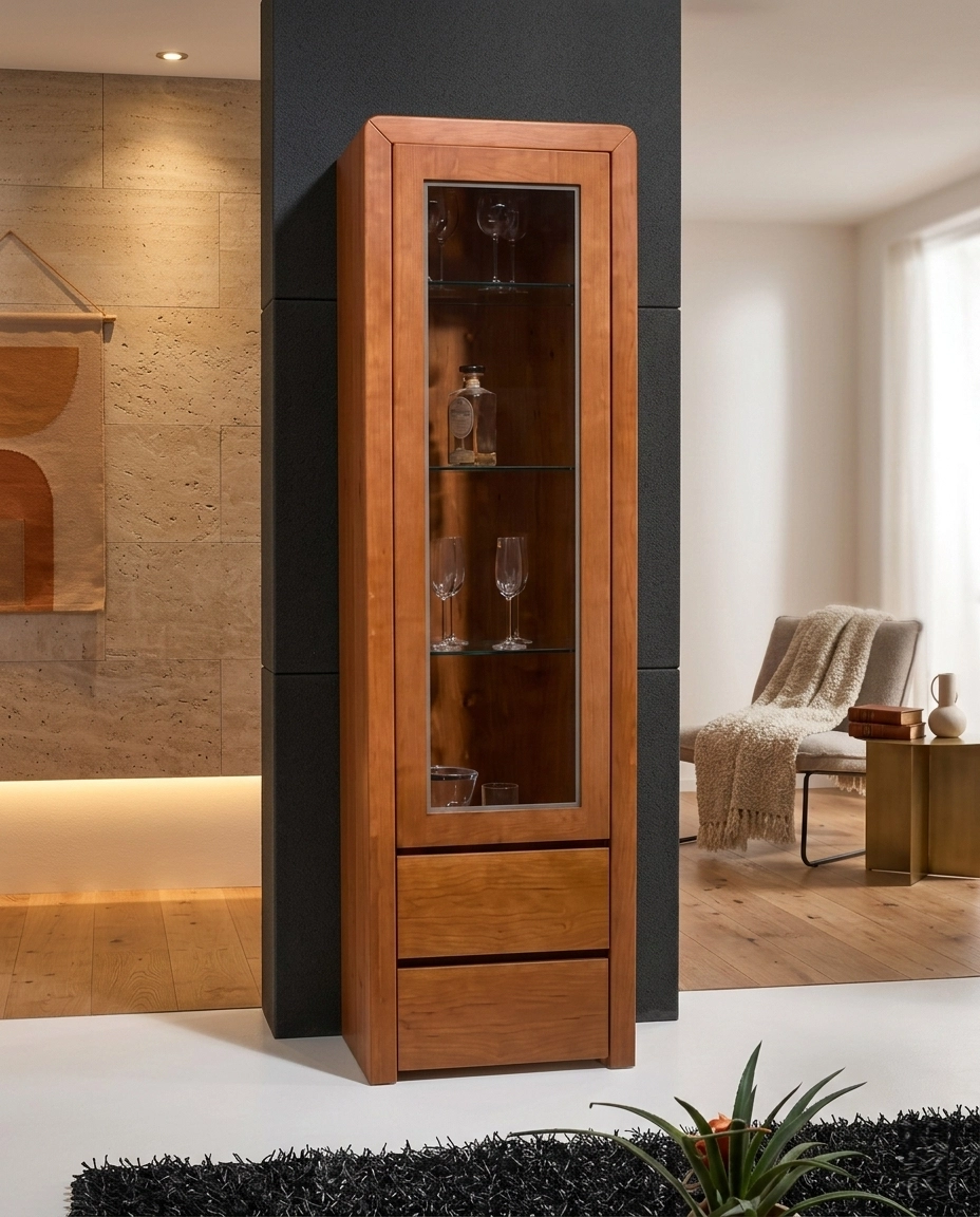 - Acabamento em madeira visível que valoriza peças